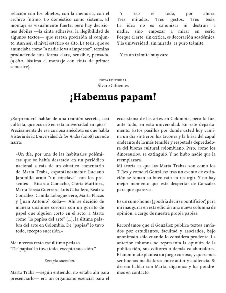 Recordamos que el González publica textos enviados por estudiantes, facultad y asociados, bajo anonimato sólo cuando lo considera prudente. La anterior columna no representa la opinión de la publicación, sus editores o demás colaboradores. El anonimato plantea un juego curioso, y queremos ser buenos mediadores entre autor y audiencia. Si desean hablar con Marta, dígannos y los pondremos en contacto.