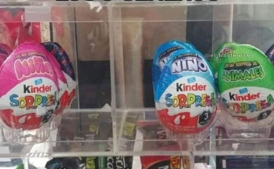 Enfin. El huevo kinder no es lo que solÃa ser. Me compré uno el otro dÃa pensando que el premio era una figurita de dinosaurio. Era una plaquita para pegarle un sticker de 1 hombre, no entendÃ. 8lukas desperdiciadas. El chocolate no está tan rico tampoco, pero eso no es nuevo. Ahora hicieron rebrand, el huevo de niña es como magenta y el huevo de niño es naranja. Y el huevo de furro? no lo he vuelto a ver. Ese es mi favorito.